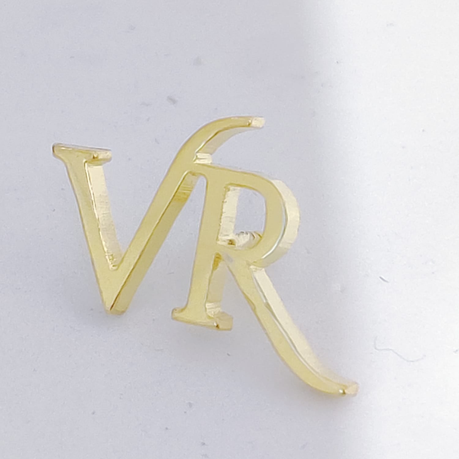 This VR Double Initial Brooch is expertly crafted from brass and finished with a luxurious gold plating. Its elegant design adds a touch of sophistication to any outfit, making it the perfect accessory for any occasion. With its quality materials, this brooch ensures durability and lasting shine.