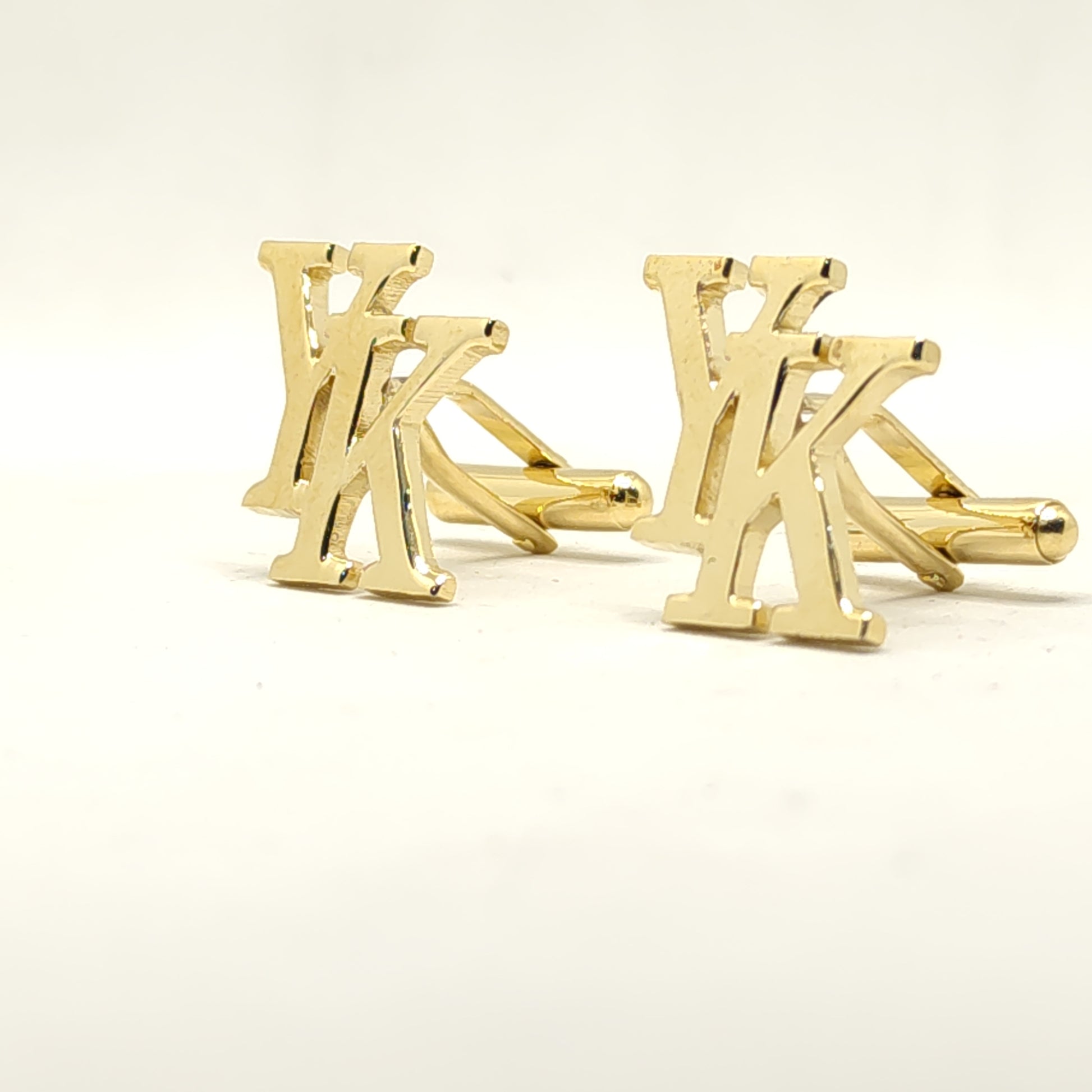 These YK Double Initial Cufflinks are crafted from durable brass and finished with elegant gold plating. Designed to add a personalized touch to your formal attire, they offer both style and lasting quality. Perfect for enhancing your look with a subtle yet distinctive detail.